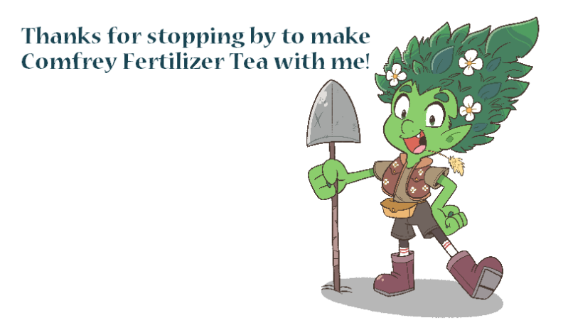 - When you are satisfied with your fertilizer's strength, you will have in your possession, a concentrated concoction known as COMFREY FERTILIZER TEA! But you are not done!!!