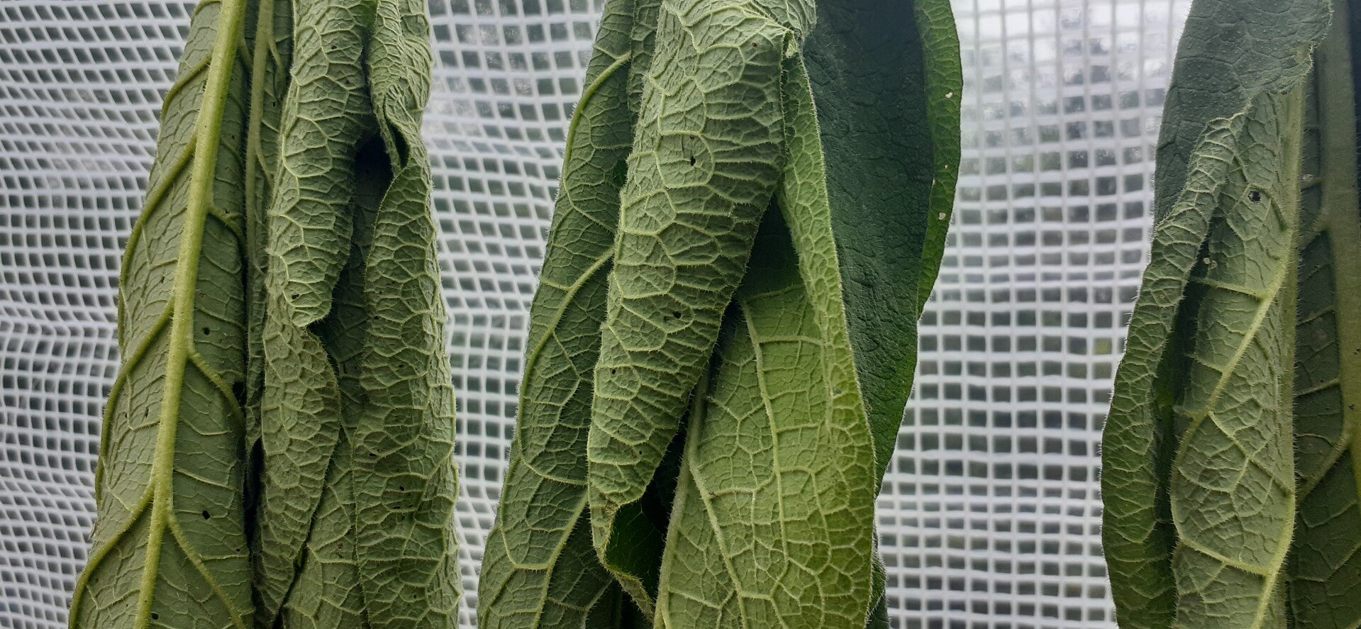 When it is time to harvest a crop for drying, all care is taken to ensure pollinators, who love Comfrey when its flowers are in bloom, are not disturbed. The Comfrey is cut when the flowers are at the end cycle of their bloom, which happens several times during a normal season.