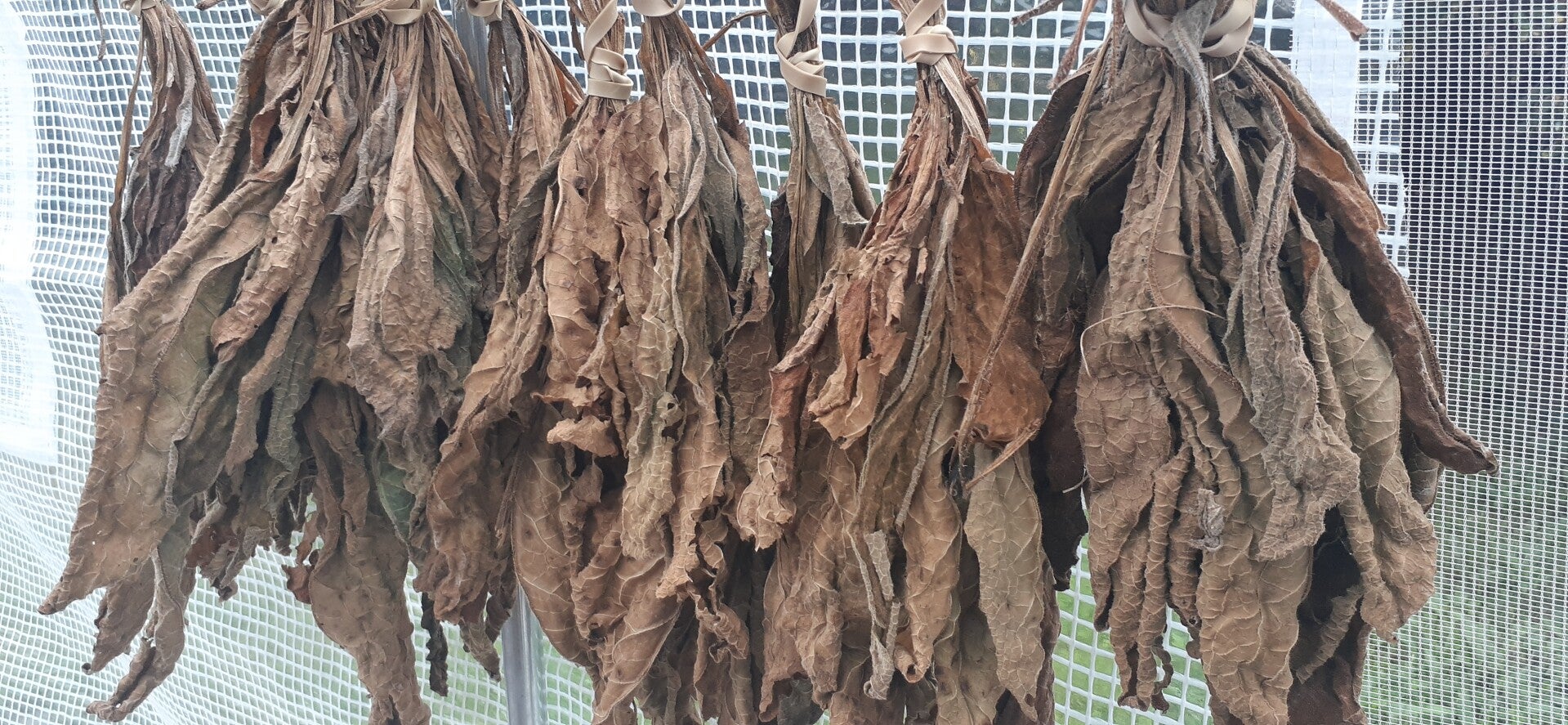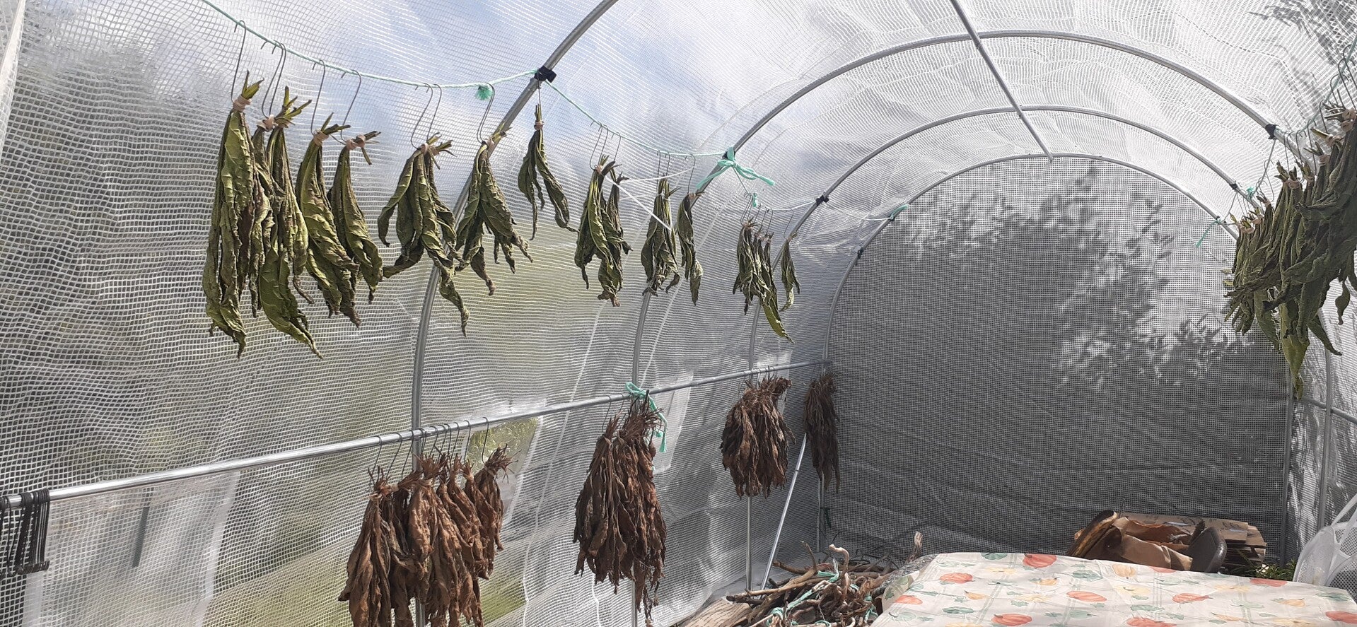 The bundles may be hung in an outdoor, open air setting to dry slowly, (as in nature when they wilt and fall to the ground), or the Comfrey may be dried in a greenhouse. It all depends on weather conditions and the weather outlook.