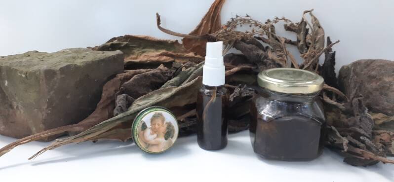 Dry Comfrey is infused in rubbing alcohol or witch hazel for use as a soothing spray or topical rub. This liniment is used to soothe sore or aching muscles. The method to make a liniment is essentially the same as making a water based "Tea".