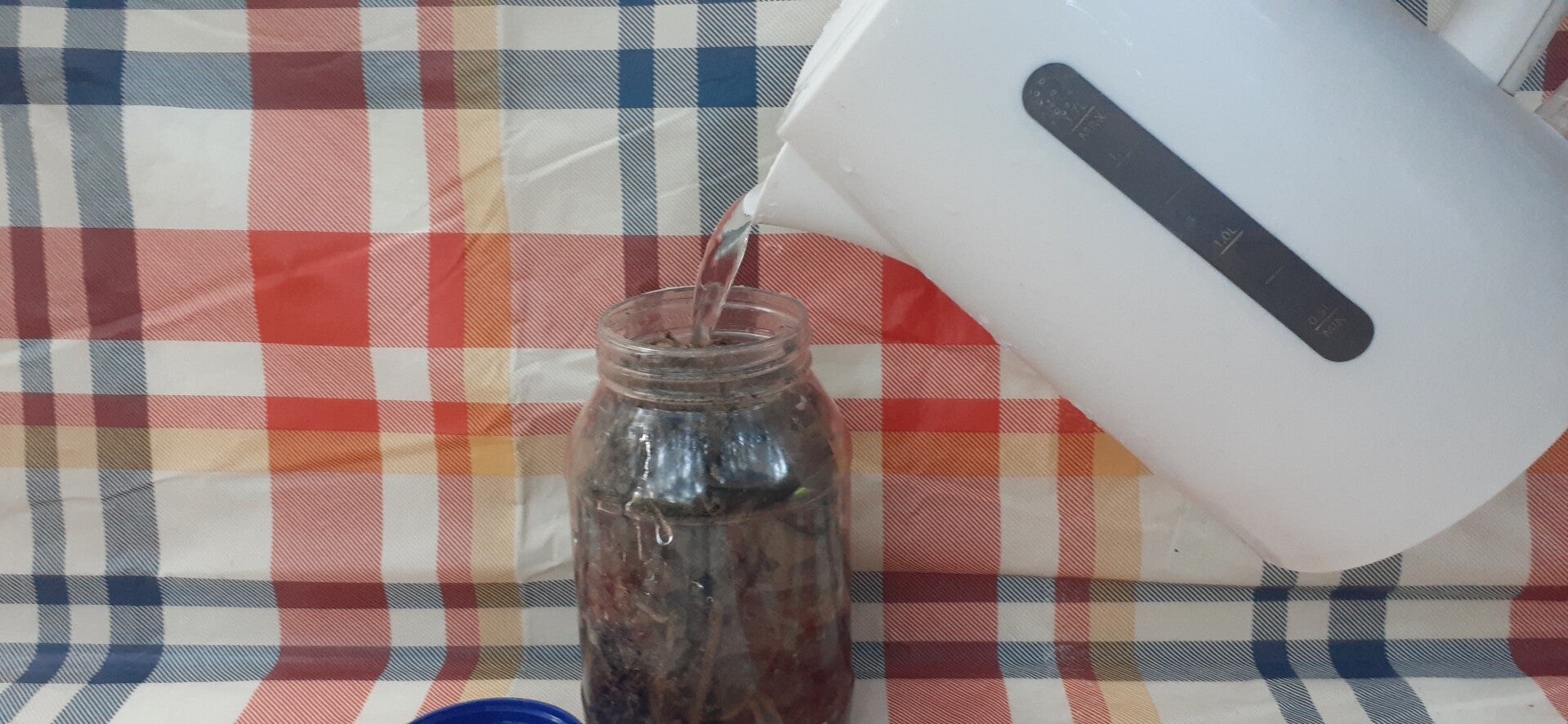 4. Add cold water or tap hot water to the top of the jar.